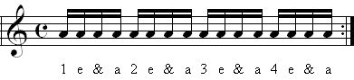4 sixteenth notes in one beat and 16 in a measure.